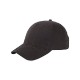 Unstructured, six-panel cap includes front panel constructed with buckram and a self-fabric closure with adjustable metal slider and tuck-in strap.