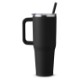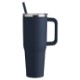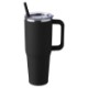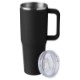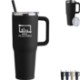 This travel mug features a double wall vacuum insulated, designed for both hot and cold beverages, and it has push on, slide open lid for easy sipping. Straw included.