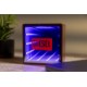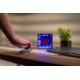 The speaker's exterior features a stunning wood grain texture and mirror front display that seamlessly integrates with a variety of interior styles. Turn it on with wireless connection and the mirrored surface comes to life with a one of a kind infinity light display in a variety of colors. Includes a mirrored screen, RGB mood lights with 5 illumination settings, hands-free calling, 800 mAh battery inside and USB-C charging. Charging time is 2 hours, playing time is 5 hours.