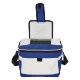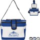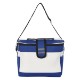 Cooler includes detachable/adjustable shoulder strap, a zippered main compartment, foil laminated PE foam insulation and an easy access top compartment. Made of a combo of 600 denier polyester and PVC.