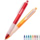 Wide-body retractable ballpoint pen features colored frost barrel with natural clip and rubber grip. Includes protective ballpoint covering. Blue or black high-quality fraud resistant ink is available. If not specified, black ink will be selected.
