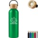This aluminum water bottle with bamboo lid has a narrow opening with screw on/off lid, that features PP carry handle. Designed for use with cool beverages only, do not microwave and do not place in freezer. Hand wash only.