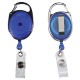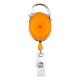 Retractable oval badge holder has 2 attachments in one. Features a spring-loaded carabiner clip for easy attachment and a retractable nylon cord which extends up to 30".